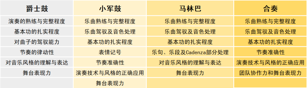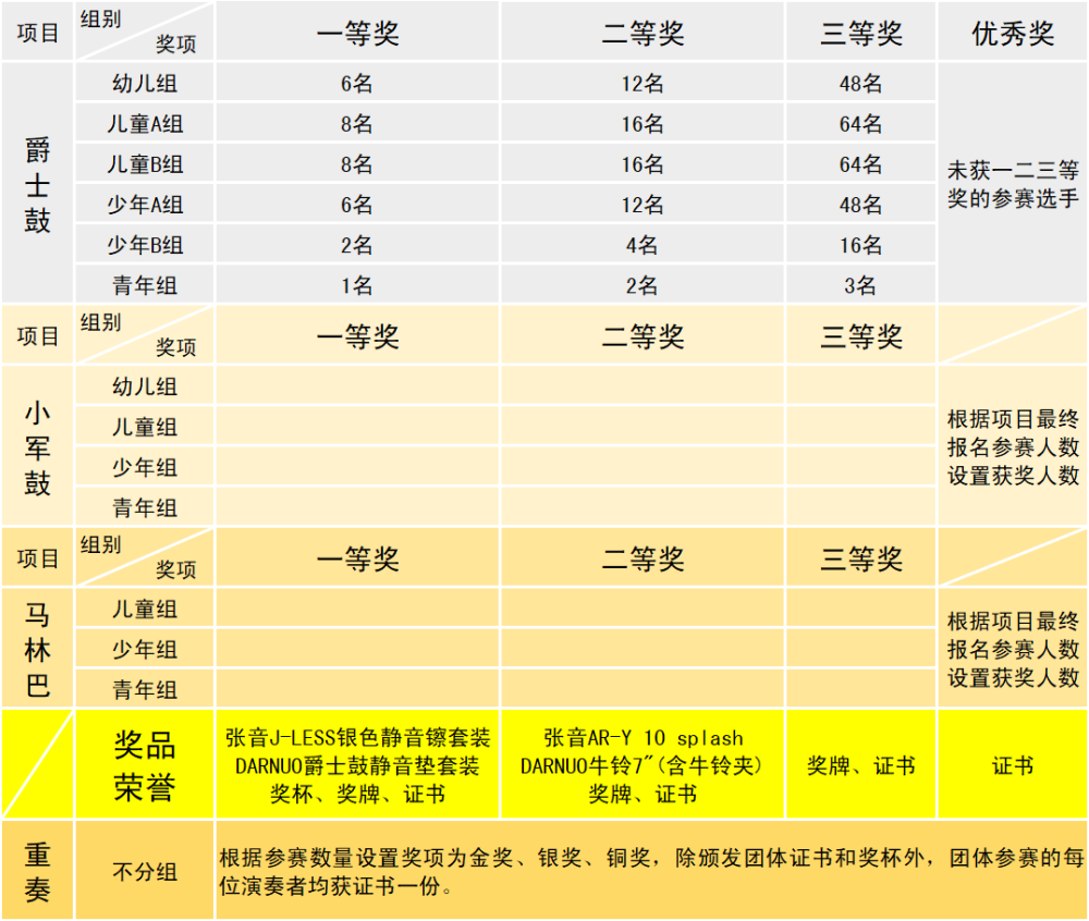 01 爵士鼓:比赛分预赛和决赛,选手需参加预赛获得晋级资格方可参加决赛。