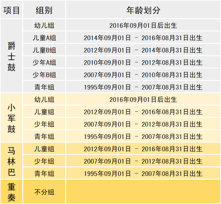 02 小军鼓、马林巴:仅一轮比赛(报名参赛者直接参加决赛)。